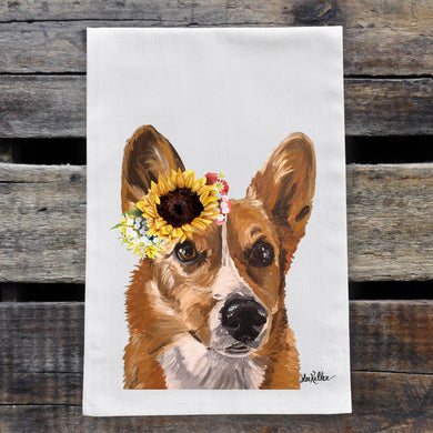 Sunflower Dog Towel 'Corgi', Fall Dog Towel