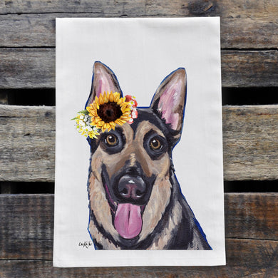 Sunflower Dog Towel 'German Shepherd', Fall Dog Towel