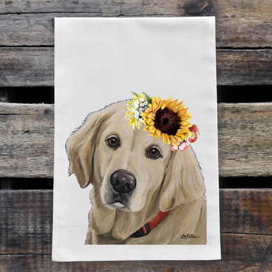 Sunflower Dog Towel 'Golden Retriever', Fall Dog Towel