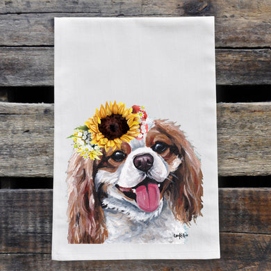 Sunflower Dog Towel 'King Charles Spaniel', Fall Dog Towel