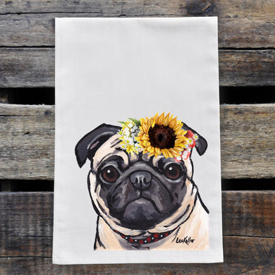 Sunflower Dog Towel 'Pug', Fall Dog Towel