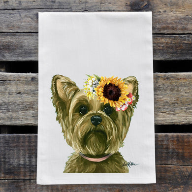 Sunflower Dog Towel 'Yorkie', Fall Dog Towel