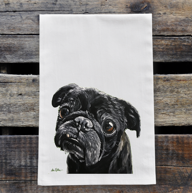 Black Pug Towel, Dog Towel, Farmhouse Kitchen Decor
