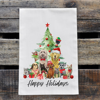 Christmas Dogs and Cats Tea Towel - Dogs and Cats Under Christmas Tree